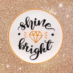 Ceramic round trinket tray that says “shine bright". Perfect for placing small items like jewelry or stationary supplies, and they just look incredible. Great for homes, desks at work or school, and gifting to others. NEW