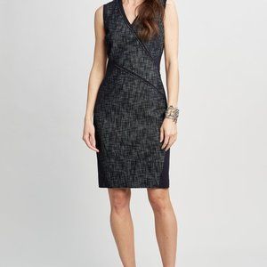 Great dress for work or parties; stretch material, grey and black textured front with a solid black/exposed zipper back. Very comfortable.