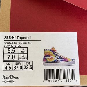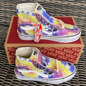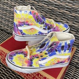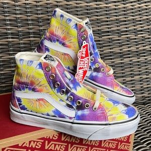 Brand new in the box authentic women`s Vans SK8-Hi Tapered Washed Tie Dye/True White