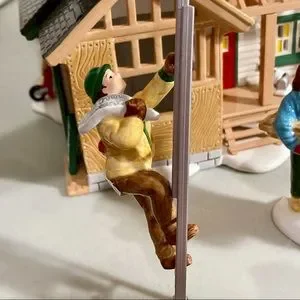 Includes the ceramic house, person on the ladder, saw bench with two people, lumber carriers, & habitat for Humanity sign. Plus a cord to light it up (no bulb.)