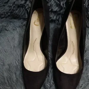 Blk Suede Pump, Heel 👠 3" to 3.5" with a Tan interior, very cute pointed toe/ pre-owned condition/ still has a lot more wear, add these beauties to your wardrobe for the winter ❄️