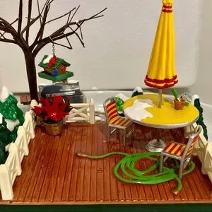Details: “Light up the barbecue or launch the boat with this fun addition to the back of any Snow Village house.”