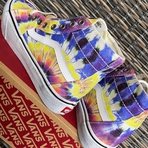 Brand new in the box authentic men`s Vans SK8-Hi Tapered Washed Tie Dye/True White