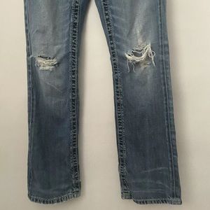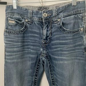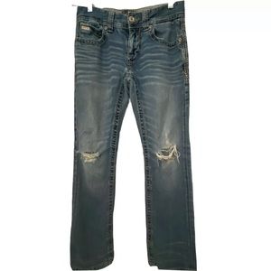 Buckle Black 3 FIT Jeans Mens 28 Denim Low Rise Thick Stitch Bootcut Medium Wash