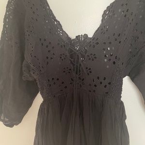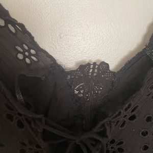 Beautiful eyelet lace Free People dress, super flattering. Laces up in the back. The inside lining is a little ripped in one corner and was that way when I received it in the mail but nothing a little fabric glue or sewing couldn't fix (shown in the last photo).