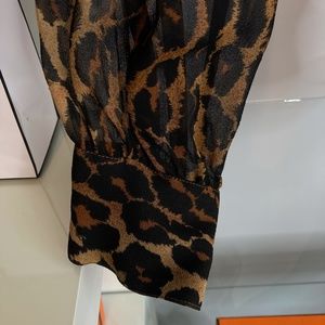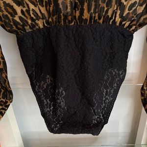 Beautiful one piece silk leopard print with lace snap bottom.
