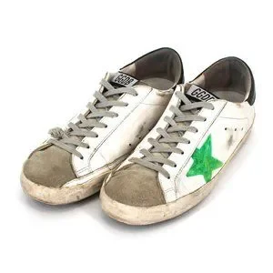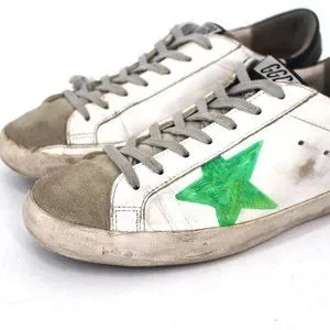 Golden Goose White Low Top Leather Sneakers Green Star Love Dealer Shoes size 39