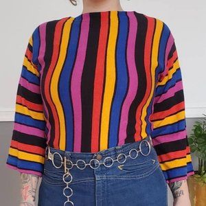 60s/70s Aileen Colorful Striped Bell Sleeved Tunic
