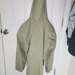 Great looking Cutter & Buck lightweight mesh lined jacket or rain coat. Green Bay packers logo professionally embroidered on the front left. Hooded with dual zipper (zip partially up or down or fully) all zippers work perfectly. Jacket is in very nice condition, the top zipper has some wear as shown and there is one small pick in the lining, also shown in the photos.