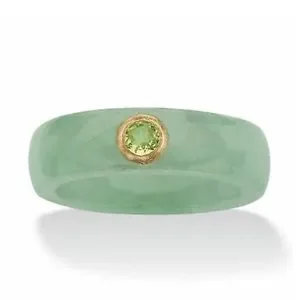 ~ Luxurious High Quality Pure Real Jade Ring with .26 TCW Genuine Peridot 10k Yellow Gold Ring ✨