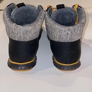 Pre Owned, Good Condition, white spots on boots are from snow - easy clean, material leather & tweed, please view all pictures carefully