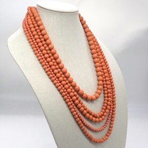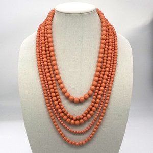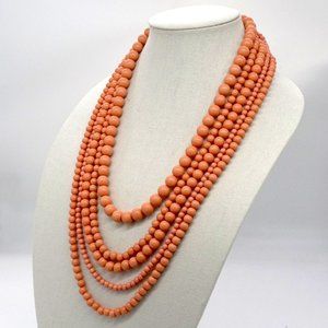 @62554 Hi Katherine, in answer to your question these Coral beads are plastic. This necklace is on the heavy side, 5 strands different sizes of beads and extremely beautiful. I love this necklace. Hope this helps you, Thanks for the inquiry. Wishing you a great day❣️