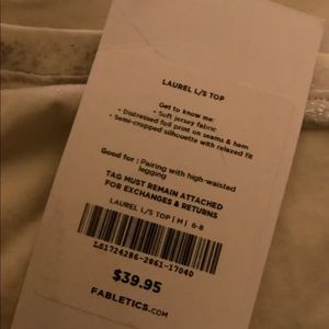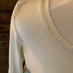 Women’s NWT Fabletics Cropped LS Pullover Ivory With Silver Speckling on Sleeves Sides and Neck