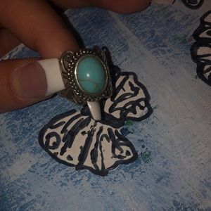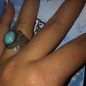 Stainless steel detailed thrifted ring with turquoise rock in middle