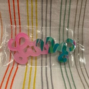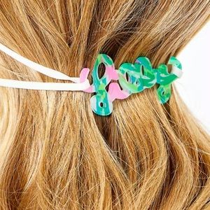 A Lilly gift set set with a personal protective vibe. Inside this reusable clear gift bag, you’ll find a Lilly pouch with zip closure & keychain detail plus a printed Hair jewelry mask extender accented with the Lilly logo.