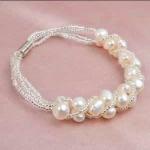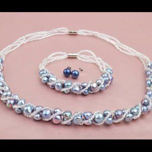 Truly one-of-a-kind, this 17.5" necklace and 8” bracelet features 7mm freshwater pearls that are baroque shaped for added interest and finished with a polished magnetic clasp. The set includes a Sterling Silver pearl earrings.