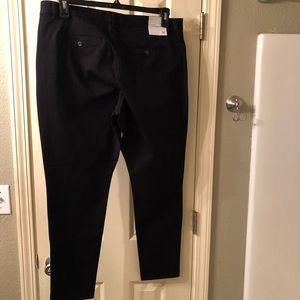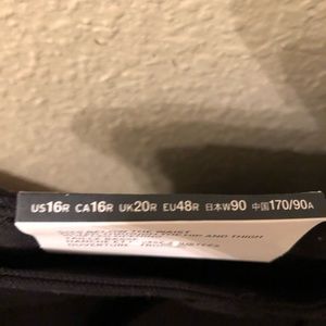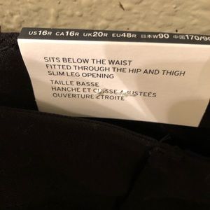 This is a pair of black dress pants in women’s size 16 Reg. They are a slim fit with a slim leg opening and fitted through the hip and thigh. They are brand new with tags and come from my pet free, non smoking home.