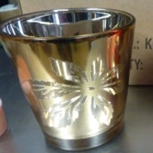 Gorgeous reflective glass inside and out creates ultimate sparkle during the holidays! These glass candle holders have a poinsettia design etched out of the metallic finish in the front. Just beautiful!