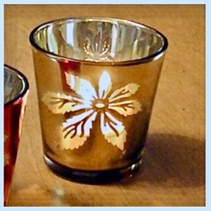 Set of 6 Gold Poinsettia Glow Glass Votive Tea Light Candle Holders NIB