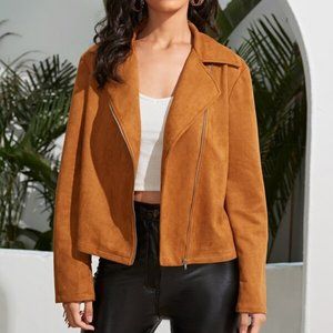 Boho Western Zip Up Fringe Trim Jacket camel