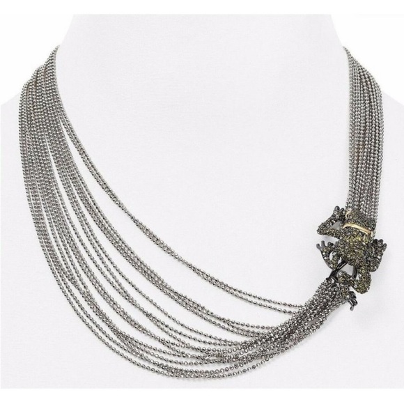 Alexis Bittar Asymmetrical Crystal Frog Draped Multi Strand Ball Chain Necklace