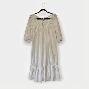 OAK + FORT 6308 Puff Sleeve White Midi Dress Size XS