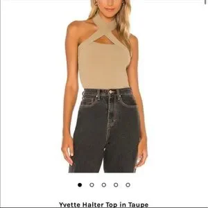 NBD Revolve Tan Tank Top Cross Neck Halter Beige Tan Sweater Knit Nude Yvette