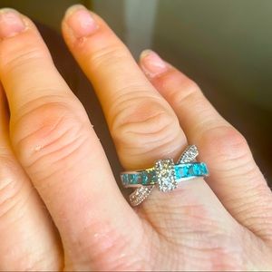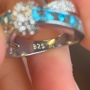 925 Stamped Silver and Blue/White Topaz Ring
