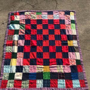 This hand sewn quilt is created with vintage fabrics in a hand tied pattern from North Carolina mountains.