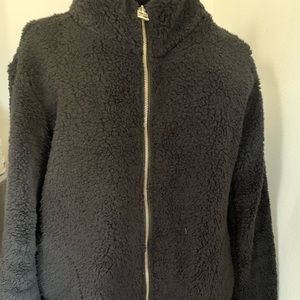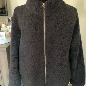 Calvin Klein Teddy black Sherpa gold detail zip logo medium performance CK