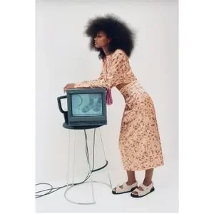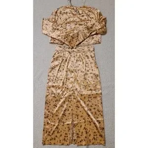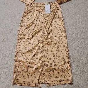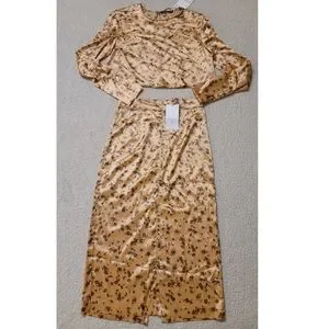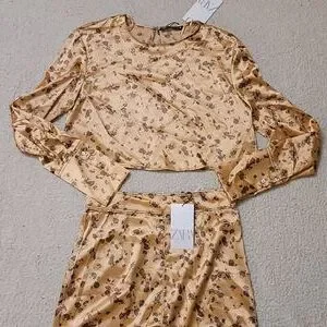 NWT Zara Satin Croped Top and Midi Skirt Set in Copper
