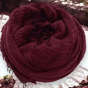 Add a pop of rich color to your wardrobe with this wine-colored infinity scarf. Designed with soft fabric and finished with a playful fringe edge, this scarf is both chic and versatile — perfect for layering during the cooler months.