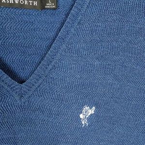 Light Blue V Neck Polo Golf Vest. 82% Cottn. 18% Linen