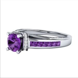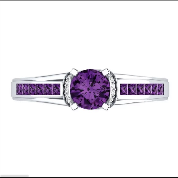 New Women’s 925 Silver Round Amethyst Lady Ring