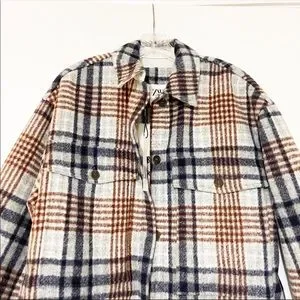 NEW Zara Plaid Check Longline Overshirt Shirt Jacket Shacket Size Small S