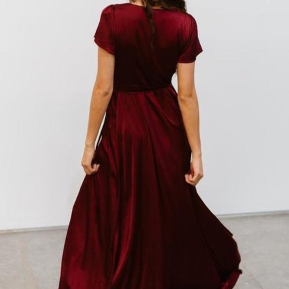 Red Satin Maxi Wrap-front Dress