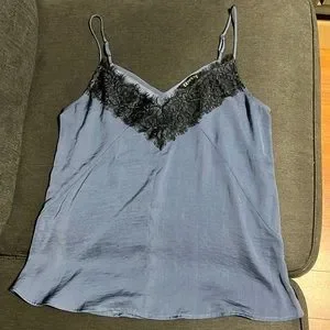 EXPRESS Blue with Black Lace Trim Camisole