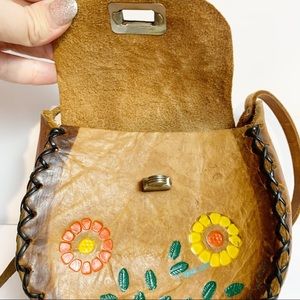 Tooled Leather Boho Hippie 70’s Small Flower Power Braided Purse Swivel Closure