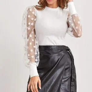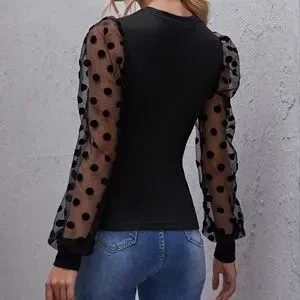 Classic Black Polka Dot Sheer Sleeve Fitted Top