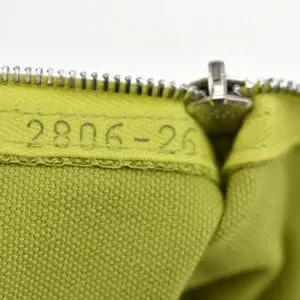 Lime Green, Canvas Medium Travel/Cosmetic/Toiletry Bag accented by "Hermes" logo zipper pull with leather tab and "H" logo tab at side