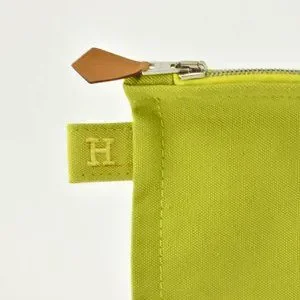 HERMES: Lime Green, Canvas & "H" Logo Medium Travel/Cosmetic/Toiletry Bag (mo)