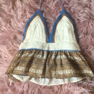 NWOT. Never worn American Eagle halter top, knit material with flowy bottom. Slightly cropped in length. Fully lined so it’s perfect to wear with or without a bra, or use as a beach cover up. Adorable paisley pattern on bottom part. Let me know if you have any questions!