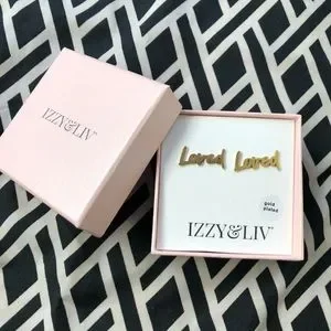Izzy & Liv 18k Gold Plated “Loved” Stud Earrings NIB
