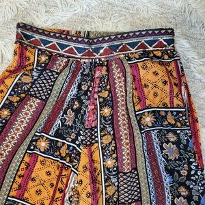 Colorful boho flowy pants. Black, orange, and burgundy floral print with gold sequin elastic waist band. EUC smoke/pet free home. Bundle and Save!