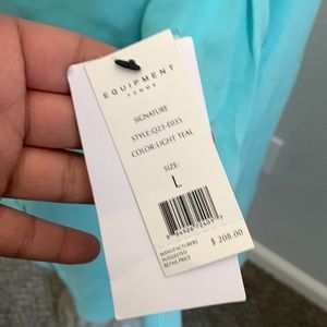 New with tags, teal color, button down, some dark lines that can be washed off at the dry cleaners, see last picture, price will reflect this