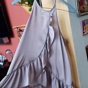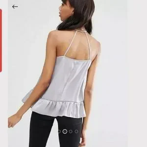 ASOS brand silvery lilac satiny halter ruffle blouse size 8