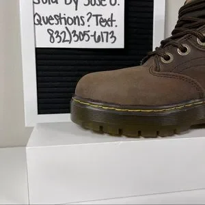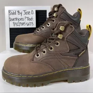 UP FOR SALE IS A NEW PAIR OF DR DOC MARTENS PLENUM WATERPROOF STEEL TOE WORK BOOTS WOMENS SIZE 5 LEATHER HIKER BROWN SLIP RESISTANT. PLEASE NOTE, THE SHOES ARE NEW, BUT DO SHOW SIGNS OF SCUFFS AND SCRATCHES FROM BEING DISPLAYED IN STORE. PRICE IS FIRM. IF OPTING FOR SHIPPING, I WILL SHIP SAME BUSINESS DAY FOR A FAST ARRIVAL TIME. I DO SHIP PRIORITY MAIL AND THE ITEM SHOULD ARRIVE WITHIN 1-3 BUSINESS DAYS. PLEASE REVIEW PHOTOS AND REACH OUT WITH ADDITIONAL QUESTIONS. THANKS FOR LOOKING!