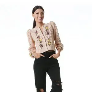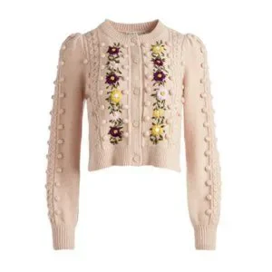 Our beloved Kitty Cardigan reimagined with floral knit embroidery. With puff sleeves and a button front closure, it's as versatile as a cardigan gets.
