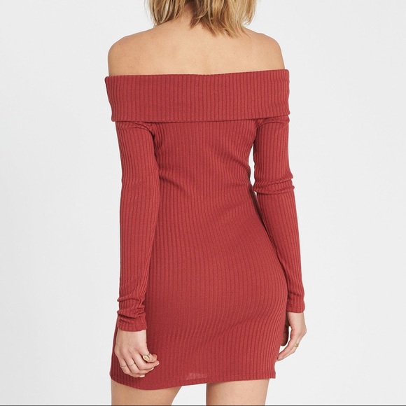 Dusty Rose fitted long-sleeved sweater dress. Super soft stretchy material. Brand new with tags from Billabong. Size medium, fits like a small/medium but has a lot of stretch. Neck area sits right at the edge of shoulders. I’m 5’6” and the dress goes down to mid-thigh on me.
