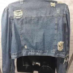New, no tag Blue jeans jacket, length 17inches shoulder to hem, armpit to armpit 26inches, two front pockets.no smoker house.